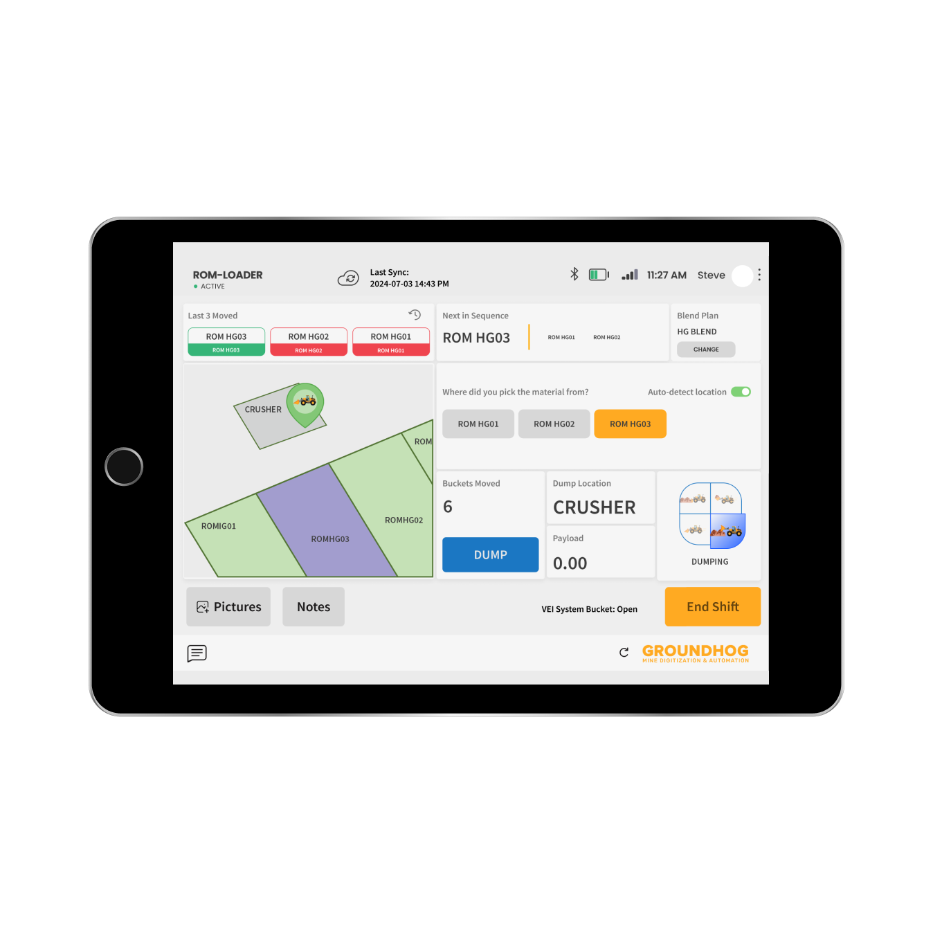 The GroundHog ROM Loader software is designed to revolutionize how raw materials are managed, from the ROM pad to the crusher, ensuring that every load is accurately tracked, and the blend plan is meticulously followed.