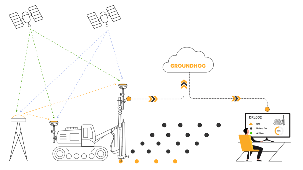 GroundHog High Precision Drilling utilizes advanced technology to deliver real-time centimetre-level positioning accuracy in drilling operations for open-pit mines.