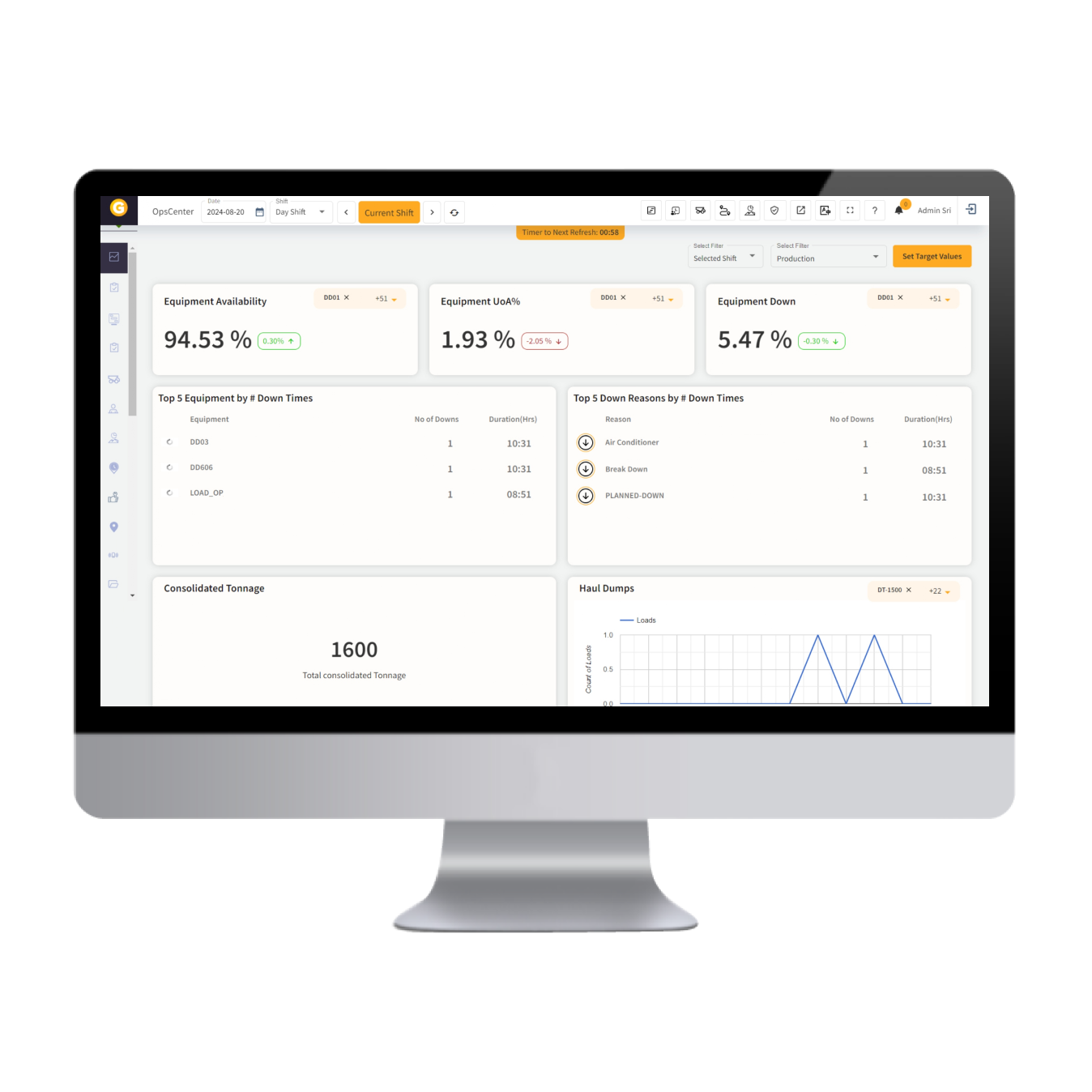 Advanced AI based algorithms use real time loading and haulage performance data at each loading point to dynamically allocate Haul Trucks to Shovel/Front Wheel Loaders.