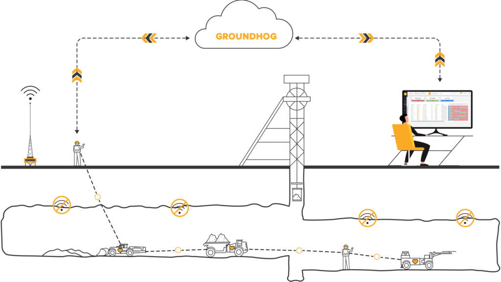 GroundHog peer-to-peer creates a dynamic mesh network so production data can be captured from miners and equipment working in WiFi dark zones and sent automatically to Control Rooms and Operations Centers.