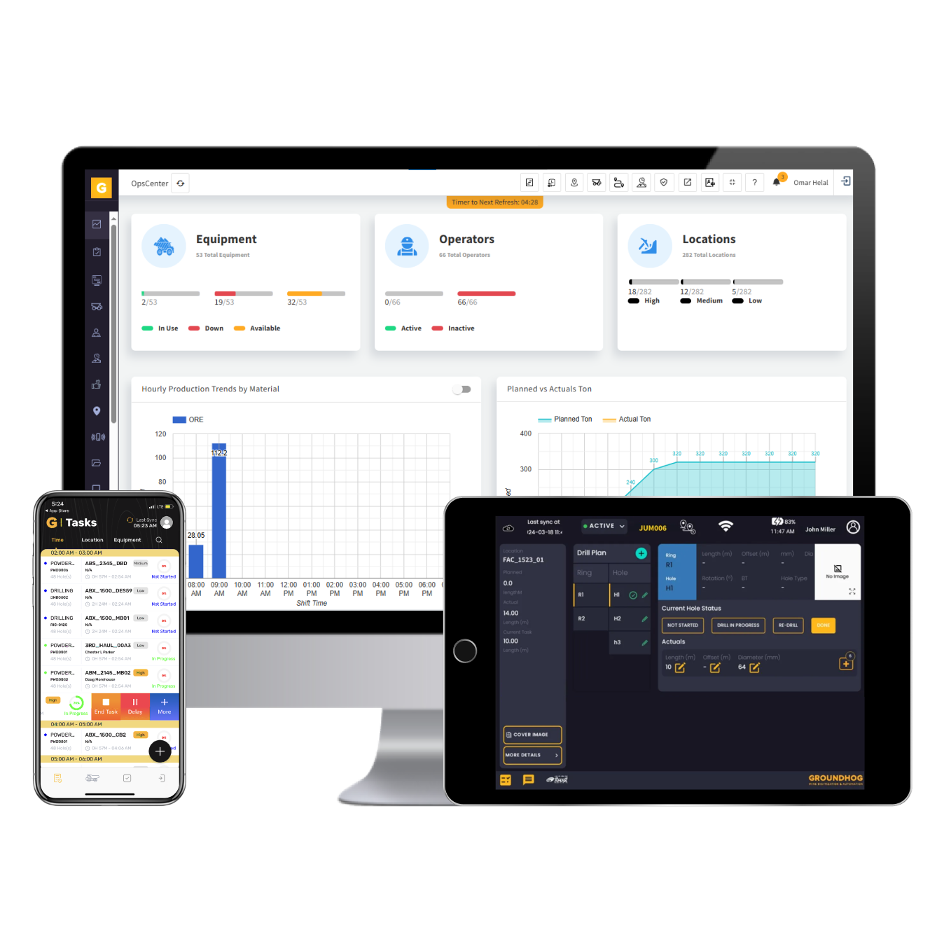 GroundHog Peer-to-Peer Networks help miners maximize equipment operation by reducing waiting times and paperwork. Superintendents and foremen prioritize resolving production delays instead of analyzing data, while mine managers make real-time, data-driven decisions to enhance production rather than relying on departmental spreadsheets.