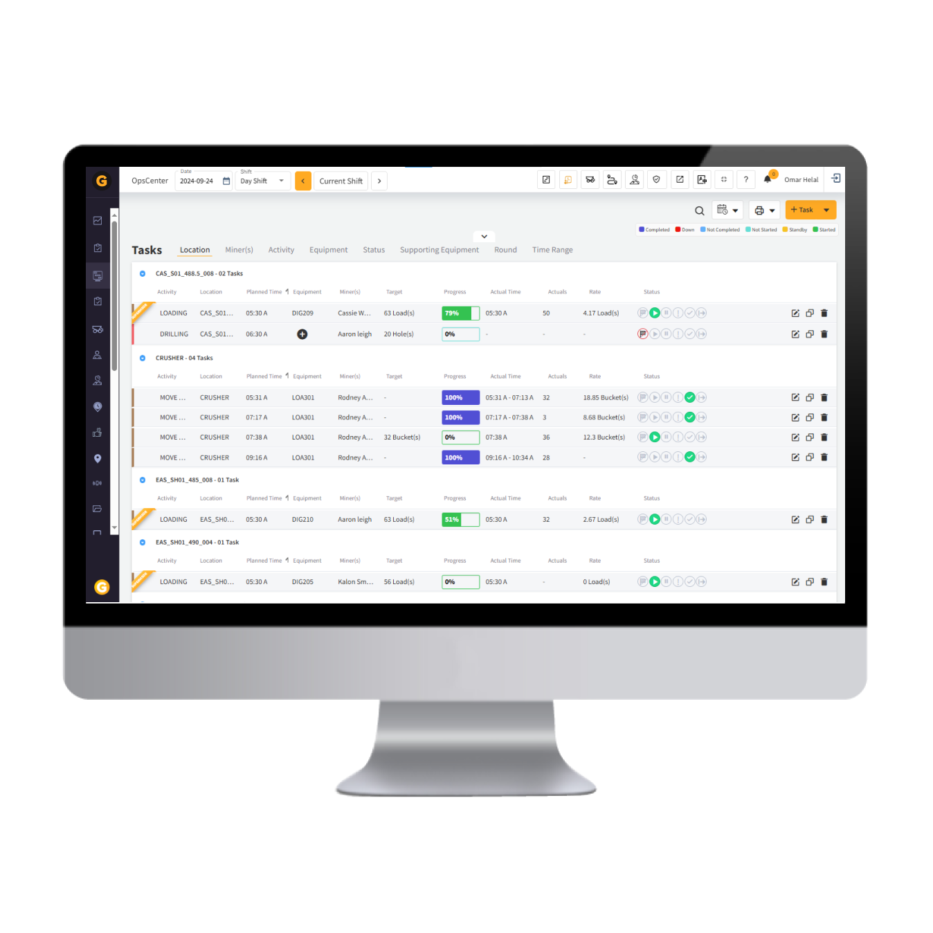 OpsCenter personnel or Dispatch monitor real-time production and adjust shift plans based on actuals reported through the SIC app or Fleet Management System. In the absence of an FMS, radio communications are used to update actuals.